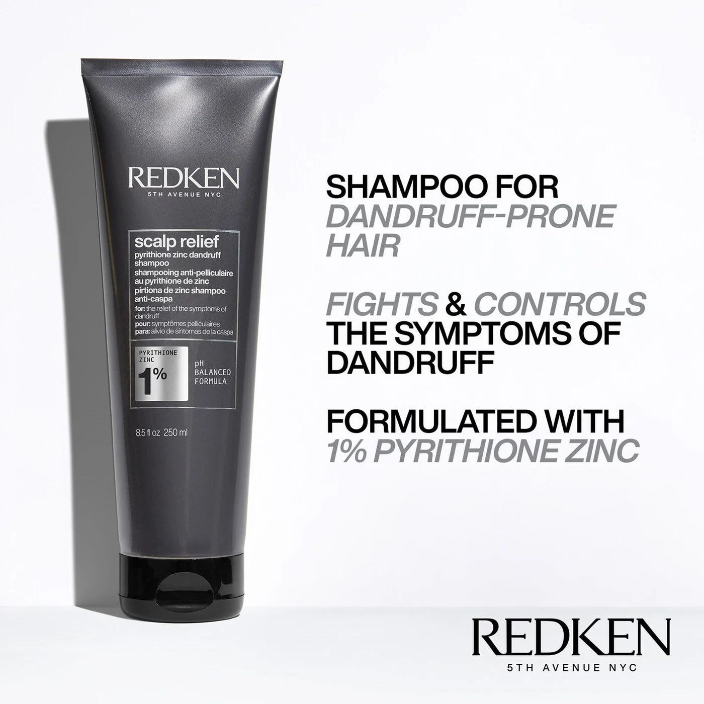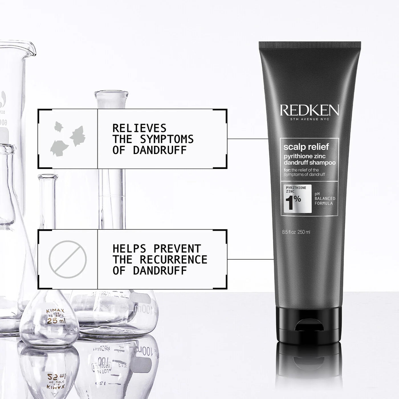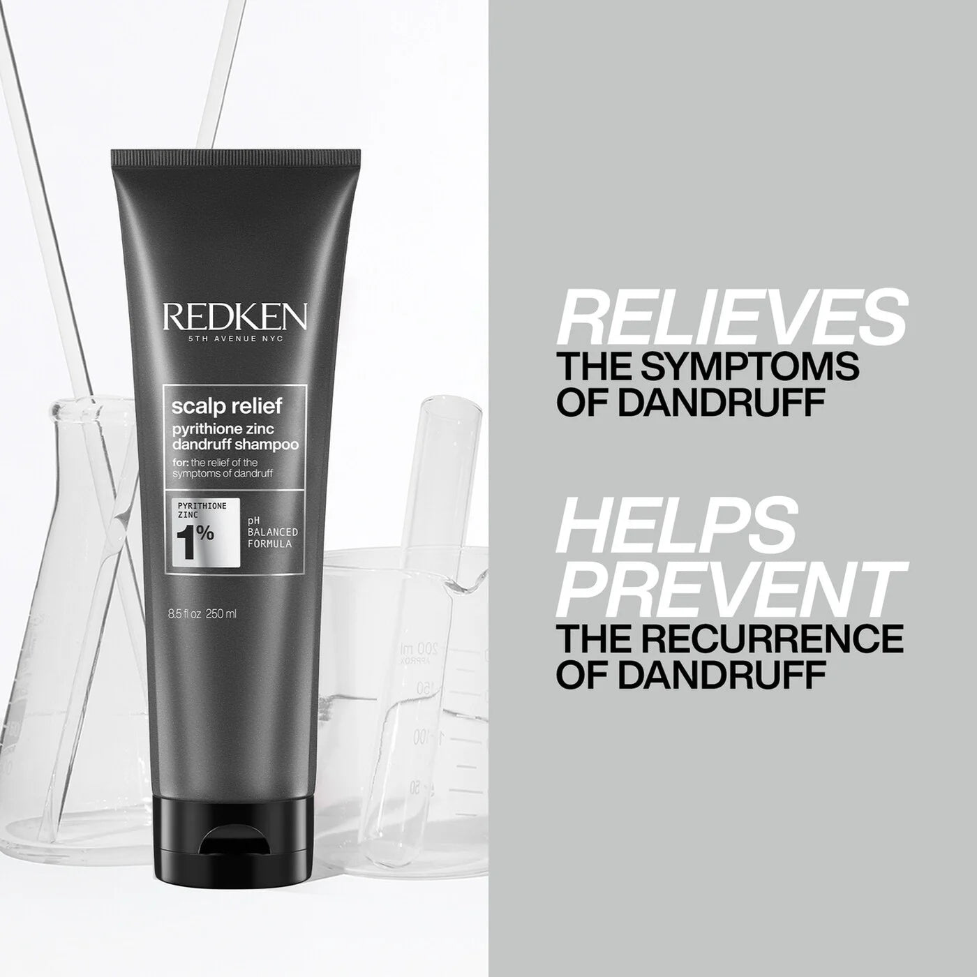 Redken's Scalp Relief Dandruff Control Shampoo helps fight and control dandruff while leaving hair silky smooth. This specialized hair treatment is a dandruff shampoo that has been dermatologist tested.